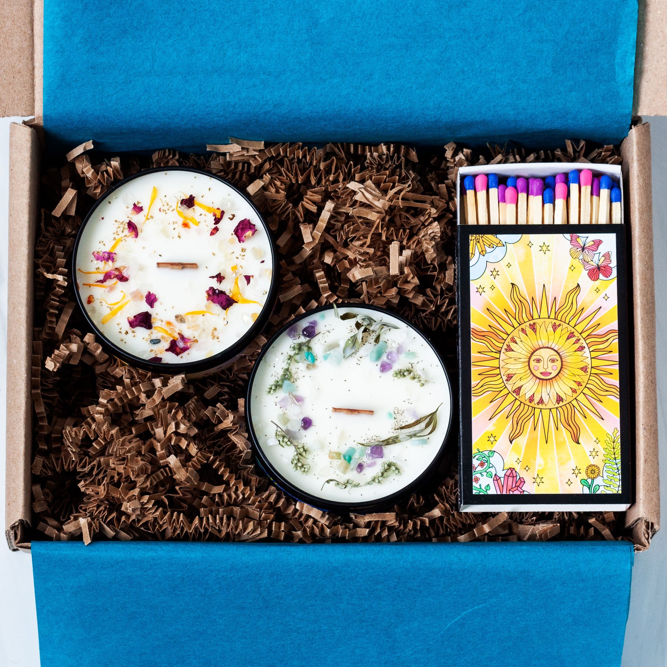 BOX SPECIFICATIONS: The gift set is thoughtfully packaged in a 9x6x3 Kraft tab-locking box, adorned with tissue and krinkle paper filler for an elegant presentation. All packaging is crafted from recycled materials, ensuring an eco-friendly touch to your enchanting experience. Our commitment to sustainability extends beyond the gift, as all packaging is fully recyclable!